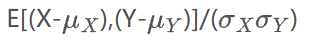 在数学上,考虑 2 个随机变量,X 和 Y,其中均值表示为��和��分别和标准差由下式表示��和��分别和 E 表示期望值运算符,则: