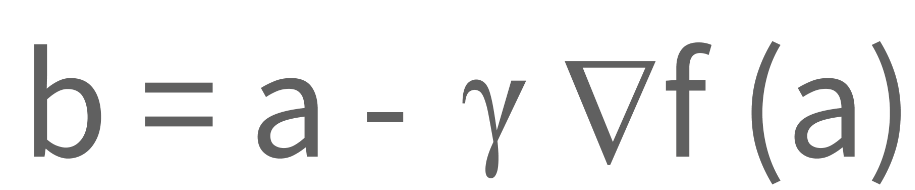 因此,如果一个人正在爬下山坡,那么登山者必须到达的下一个位置在这个等式中用“b”表示。然后,有一个减号,因为它表示最小化(因为梯度下降是一种最小化算法)。伽马称为等待因子,剩余的项即梯度项本身显示最陡的下降方向。