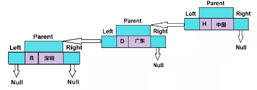 所以 “B” 为键,"深圳"为值插入此对象后,TreeMap的结构如下所示。