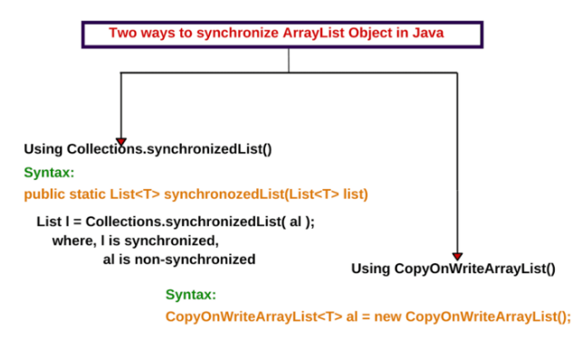 有两种方法可以获取 ArrayList 的同步版本。它们如下: