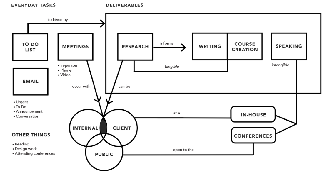 采用模糊,抽象的概念,使其有形,增强团队沟通,创造共同点。这也让团队成员可以很容易地立即在地图上发现某些内容并说“这不对。”也许你的同事是对的,并且没有正确捕获某些内容。或者也许你的同事是错的,地图揭示了一个误解,否则会导致项目后期的摩擦。无论哪种方式,映射练习都指出了需要进一步讨论的内容,从长远来看,这比进行一个理解错位的项目更有效。