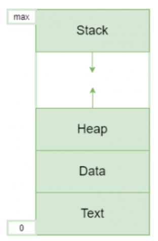上图表示一个进程及其组件。在左侧,我们显示内存 - 文本部分从较低的内存偏移量开始。进程的堆和堆栈部分可以根据进程的内存要求而增长。