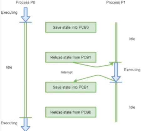 有时,中断信号或操作系统调用等多个因素会中断正在运行的进程,并且进程会抢占其执行。发生这种情况时,操作系统会将当前执行统计信息保存在进程的PCB中。这可确保下次恢复进程执行。