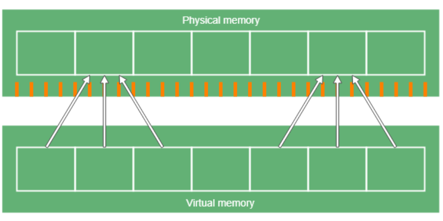 当然,我们将虚拟内存存储在物理内存中,操作系统负责维护两者之间的映射。此映射通常涉及硬件加速。