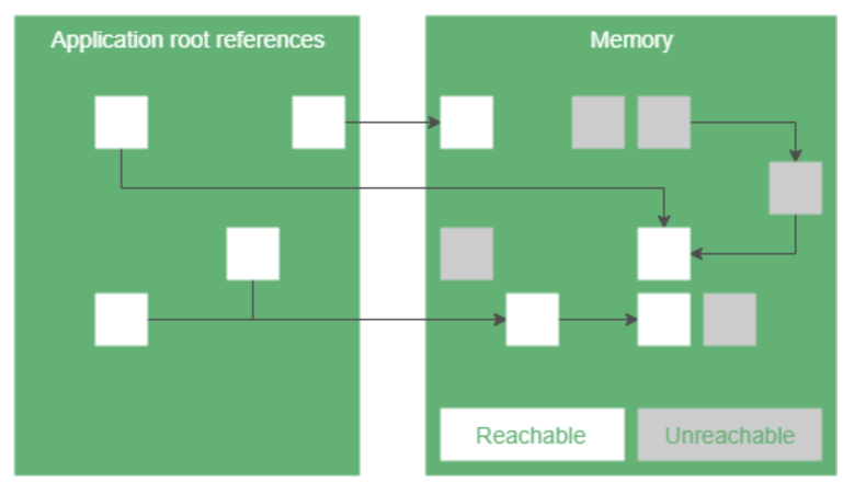 GC 需要跟踪堆空间中对象的状态才能完成其工作。例如,可能的状态是可访问的。这意味着应用程序保存对对象的引用。此引用可能是可传递的。唯一重要的是应用程序可以通过引用访问这些对象。另一个例子是可以完成的:我们无法访问的对象。这些是我们认为是垃圾的物体。