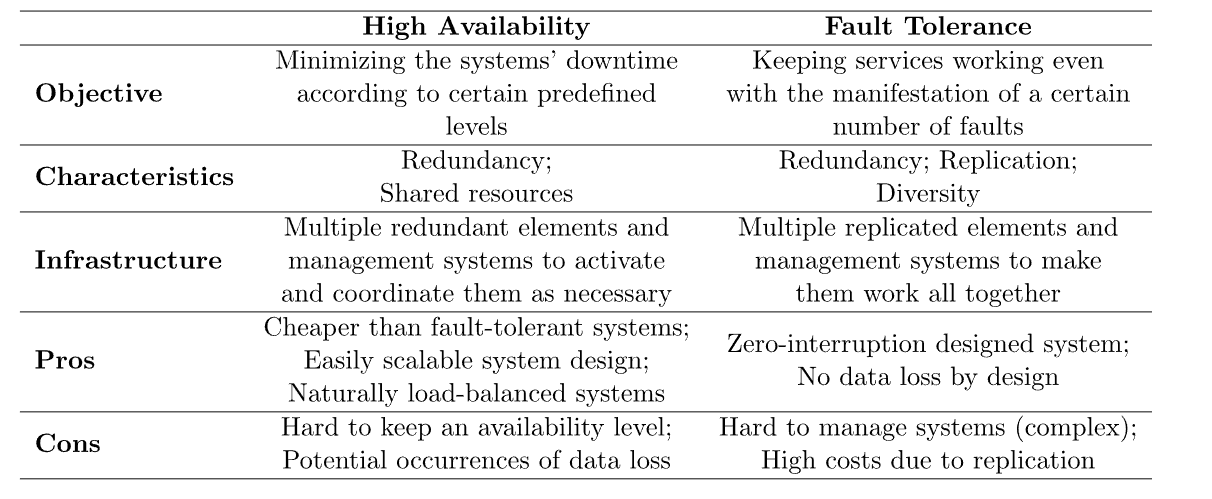 但是,尽管相关概念、高可用性和容错并不等同。因此,在下一节中,我们将看到背景概念。接下来,我们将特别探讨高可用性和容错。最后,我们将概述所研究的概念,并在系统摘要中进行比较。