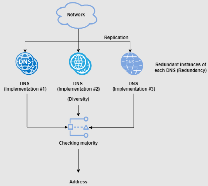 对于冗余,我们的意思是让副本准备好立即更换故障组件。然而,对于多样性,我们的意思是部署单个组件规范的不同实现,从而降低复制特定故障的可能性。