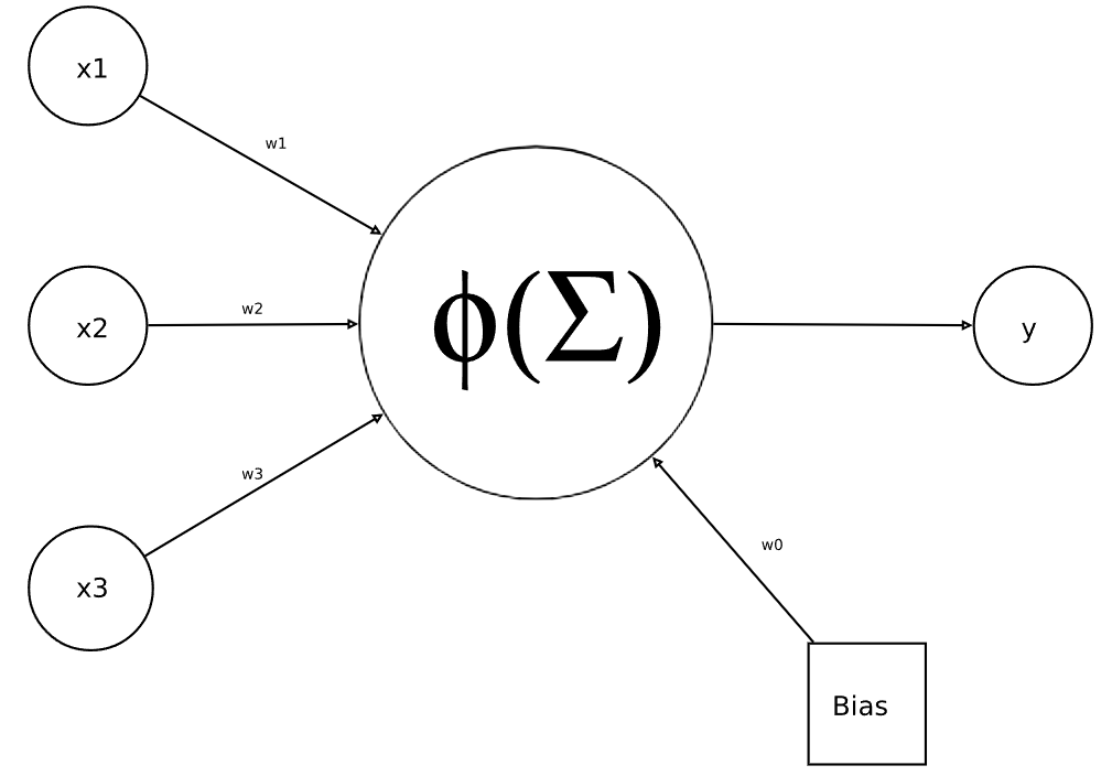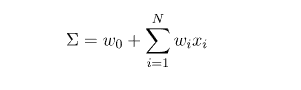 信息主要存在于权重的值中。训练过程的主要目的是找到权重的最佳值。 偏差被认为是输出等于 1 且权重w0的附加单位。它具有截距(偏移)功能y。 如果没有偏差,网络生成的模型被迫从问题空间中的原点或点( x=0, y=0 )传递。偏差增加了灵活性,并允许对不满足此条件的数据集进行建模。 总和