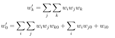 其中,每个总和扩展到每层的所有单位,子索引为 0 的权重表示偏差。经过一些计算,这个表达式可以归结为: