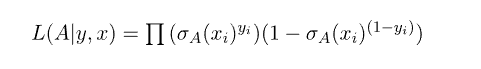 我们通过扩展上面的逻辑函数公式来定义函数L(A | y, x)。如果一个是包含函数参数的向量,那么: