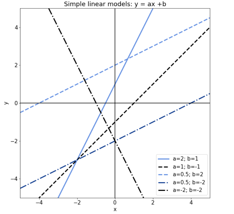中a的所有其他值,模型是另有定义的。以下是线性模型的所有有效示例,其一个和b参数值不同:
