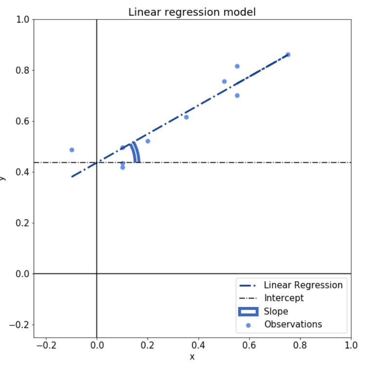 还有一个直观的理解,我们把两个参a,b分配给它们。考虑到它们是线性模型,在回归相关的线性模型中a,b分别指直线的斜率及其截距:
