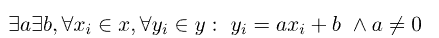 假设我们研究的两个变量x和y维数相等,即|x| = |y|。现在让我们假设x和y之间存在线性关系,这意味着存在两个参数a,b,使得y = ax + b。如果对于变量x中的任意元素xi,那么yi = axi + b,则这种关系是完全线性的。