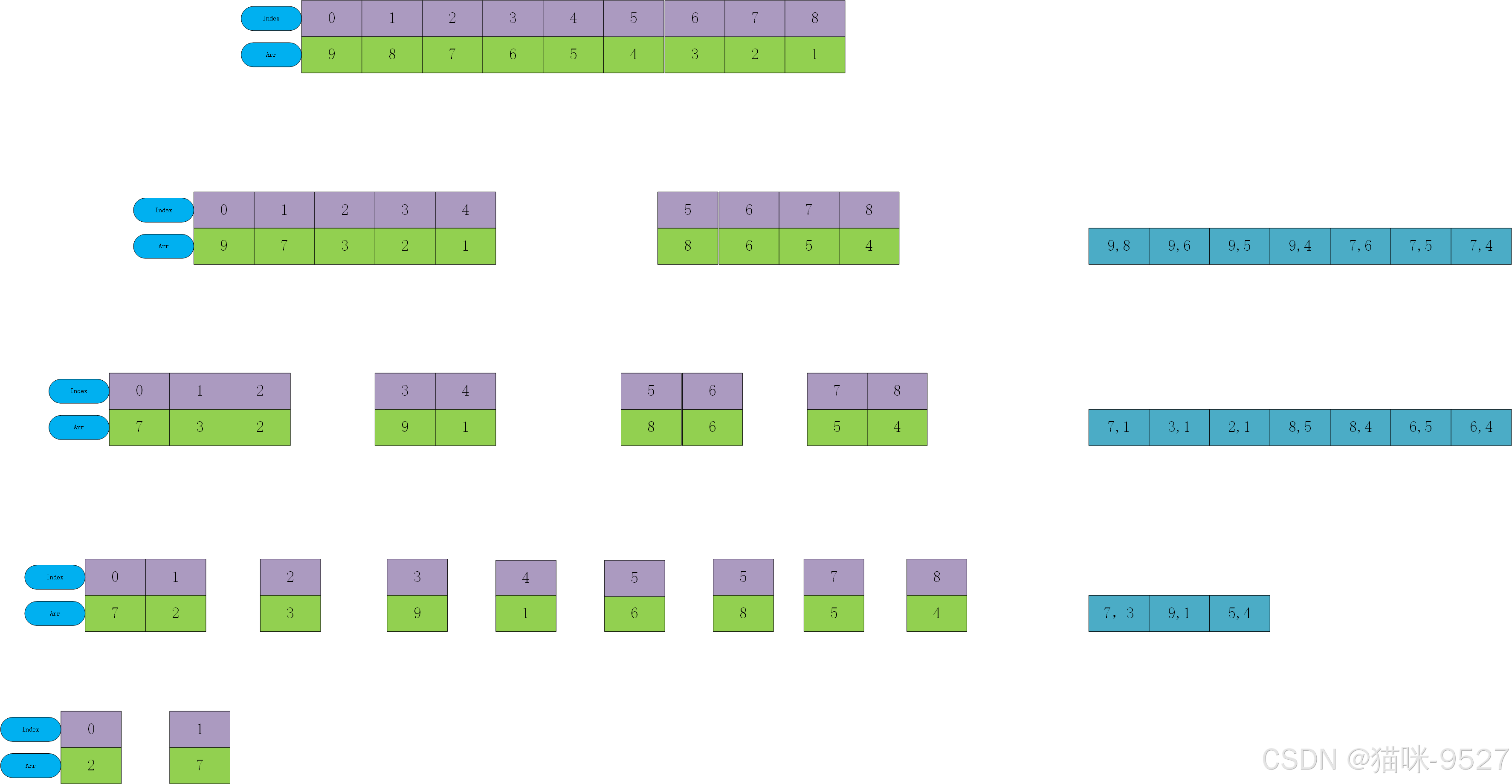降序升序 void merge(vector<int>&nums,int low,int high,int mid) { int left=low,right=mid+1, i=0; while(left<=mid&&right<=high) { if(nums[left]>nums[right]) { vim+=(high-right+1); ret[i++]=nums[left++]; } else ret[i++]=nums[right++]; } while(left<=mid) ret[i++]=nums[left++]; while(right<=high) ret[i++]=nums[right++]; for(int i=0;i<high-low+1;i++) { nums[i+low]=ret[i]; } } void merge(vector<int>&nums,int low,int high,int mid) { int left=low,right=mid+1, i=0; while(left<=mid&&right<=high) { if(nums[left]<=nums[right]) ret[i++]=nums[left++]; else { ret[i++]=nums[right++]; vim+=(mid+1-left); } } while(left<=mid) ret[i++]=nums[left++]; while(right<=high) ret[i++]=nums[right++]; for(int i=0;i<high-low+1;i++) { nums[i+low]=ret[i]; } }