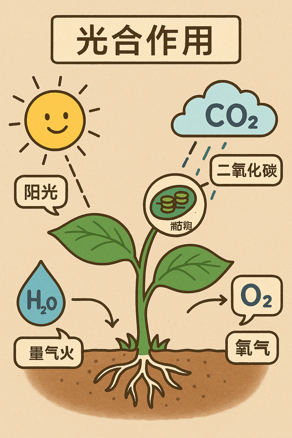 请用一张信息图解释什么是光合作用,使用中文解释。
