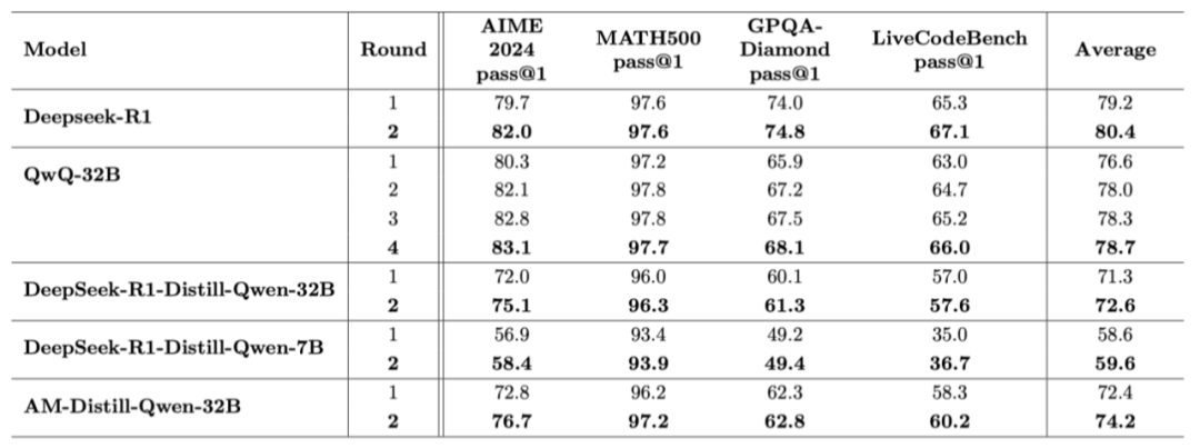 这种变化表明,多轮推理不仅提升了结果准确性,也改变了模型的表达风格,使其在回答时更加 “像人类”,且逻辑清晰。