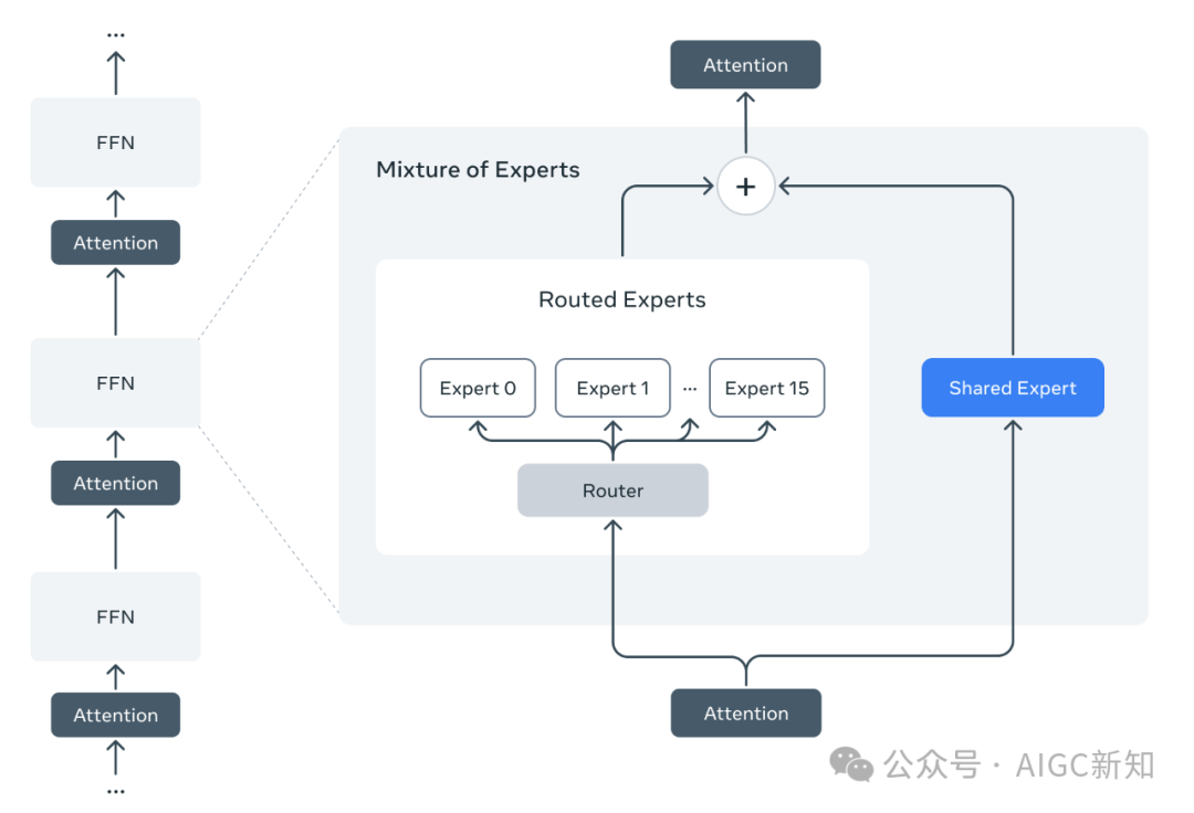 Llama4系列AI模型是Meta公司推出的最新产品,它采用了混合专家(MoE,Mixture of Experts)架构,这是一种在训练和回答用户查询时效率更高的架构。