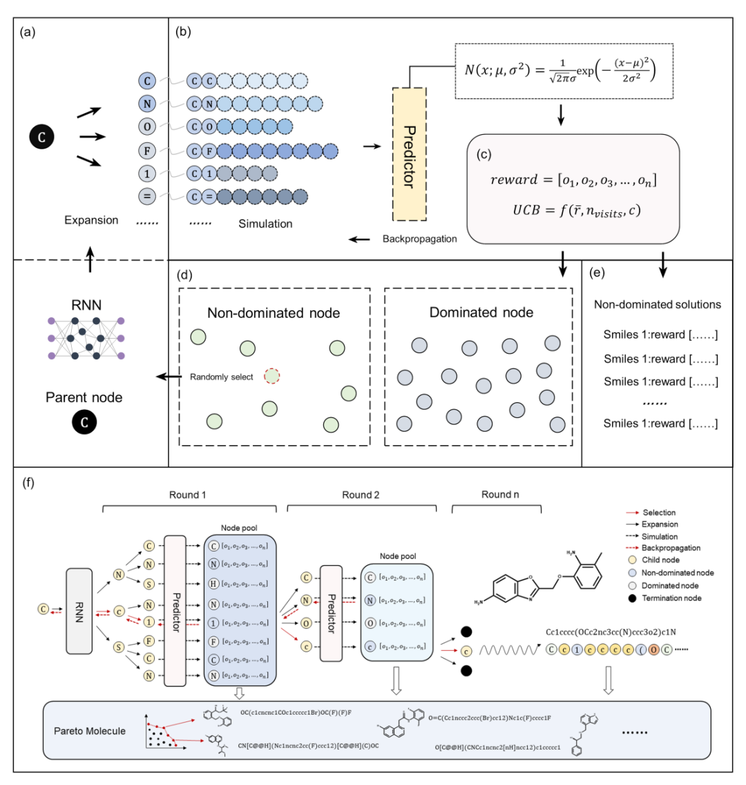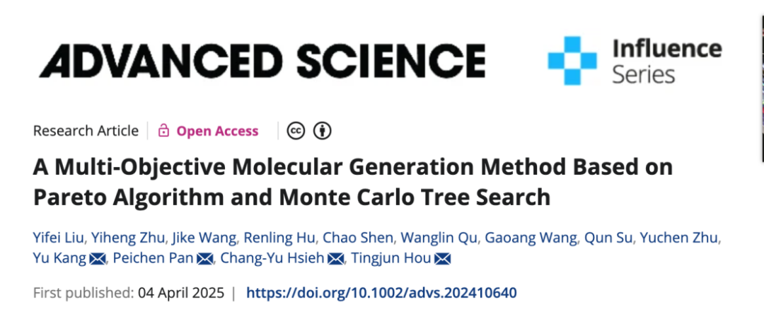 Liu Y, Zhu Y, Wang J, Hu R, Shen C, Qu W, Wang G, Su Q, Zhu Y, Kang Y, Pan P, Hsieh CY, Hou T. A Multi-Objective Molecular Generation Method Based on Pareto Algorithm and Monte Carlo Tree Search. Advanced Science.