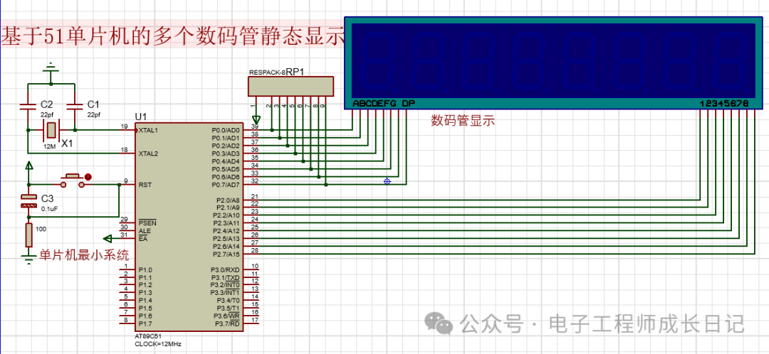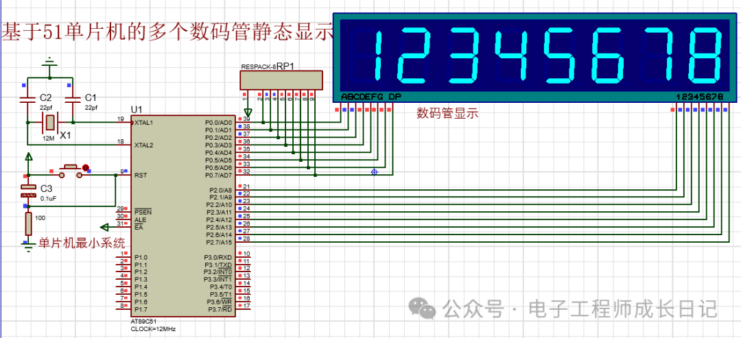 具体实现功能: 使用DeepSeek编写C语言代码,实现8个数码管分别显示“1-8”。