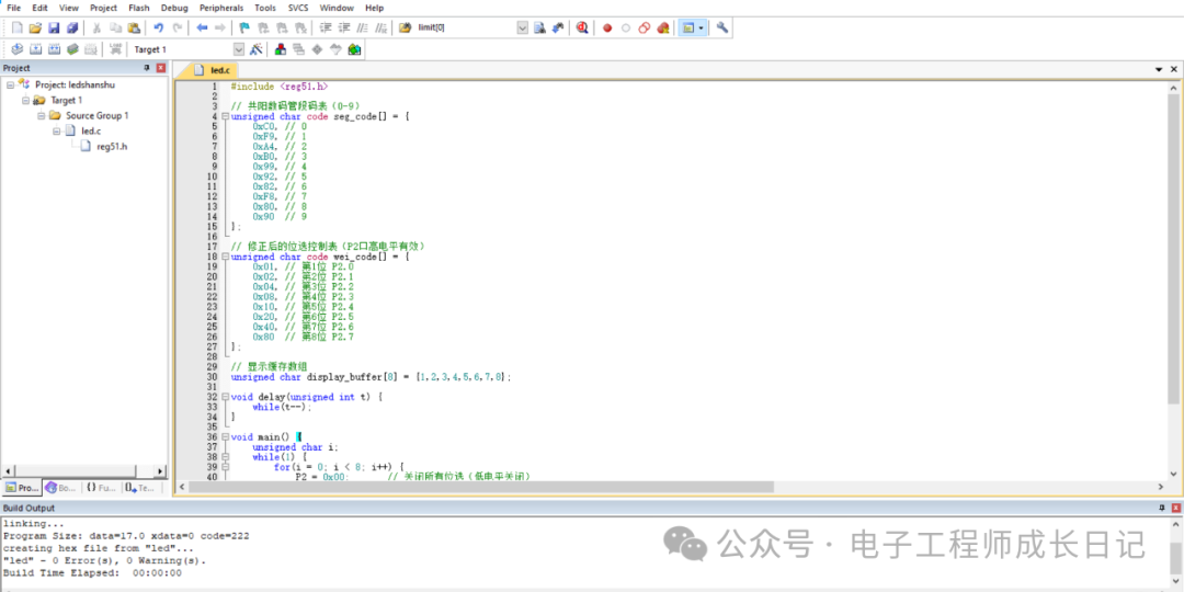 P0 = seg_code[display_buffer[i]]; // 设置段码