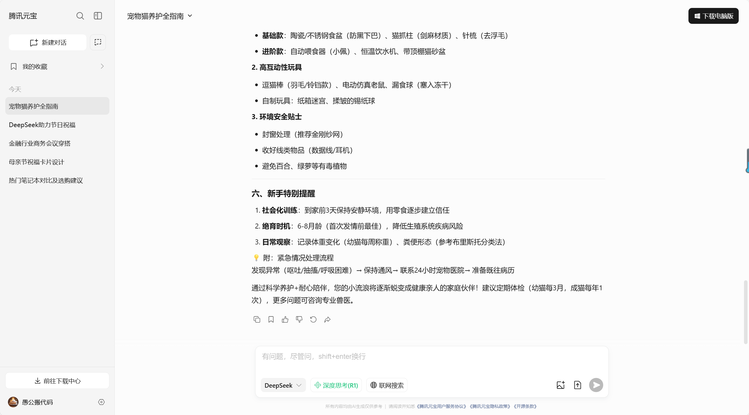DeepSeek 可根据宠物的健康状况、品种、年龄等需求,提供个性化的饮食和营养建议。