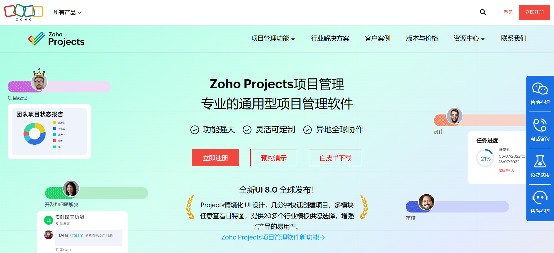 Zoho Projects 项目管理功能全面,允许用户根据项目特点和业务流程自定义工作流,提供多种项目模板,用户可以根据项目类型选择合适的模板快速启动项目。