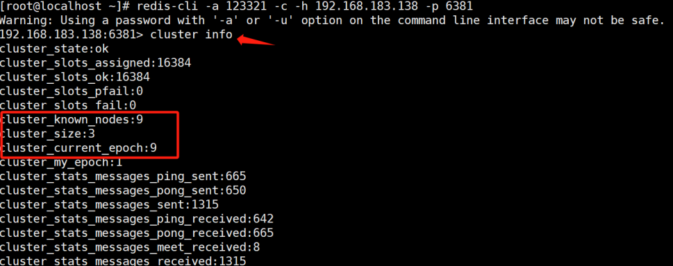 cluster info查看显示9台redis都加入集群