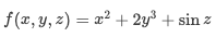 f(x, y, z) &= x^2 + 2y^3 + \sin z \\