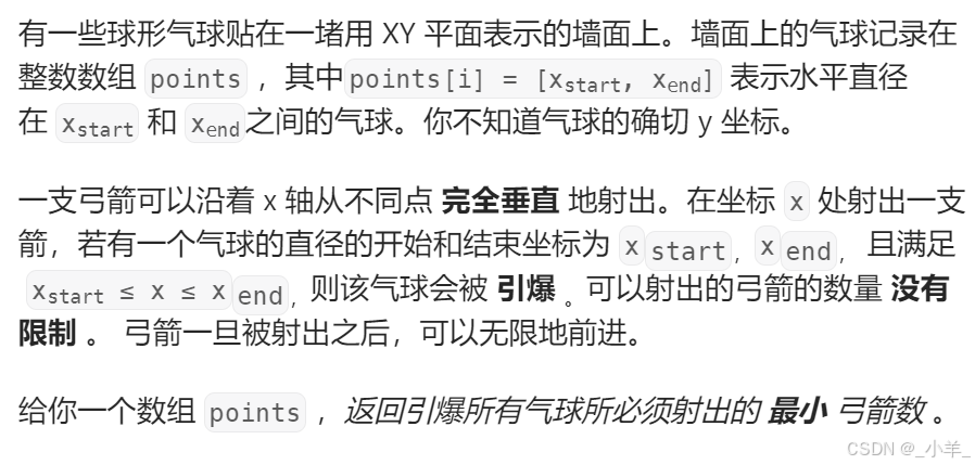 贪心策略:我们在射箭的时候,要发挥每一支箭最大的作用,应该把互相重叠的区间统一引爆。