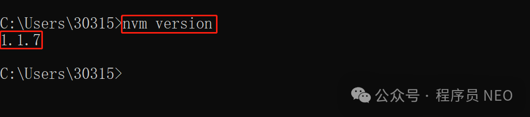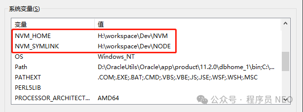 NVM_HOMEH:\workspace\Dev\NVMNVM_SYMLINKH:\workspace\Dev\NODEPath 变量中添加如下的两条数据进去:%NVM_HOME%%NVM_SYMLINK%nvm version
