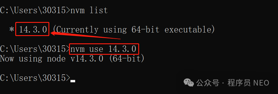 nvm use 版本号• 选择使用指定版本的 Node.js