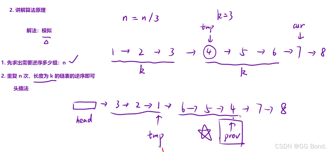 k 是一个正整数,它的值小于或等于链表的长度。如果节点总数不是 k 的整数倍,那么请将最后剩余的节点保持原有顺序。