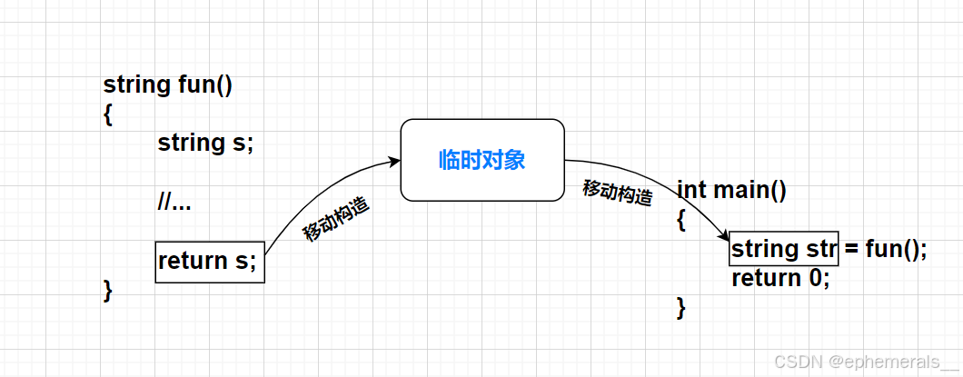 有了移动构造,函数体内部定义的对象传值返回后,由于返回值是即将销毁的对象,会被移动构造给临时对象,临时对象再移动构造/移动赋值给当前接收对象,这样就完成了两次资源转移,在没有编译器优化的情况下也避免拷贝。