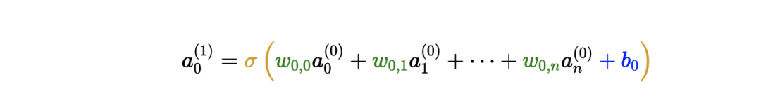 每一层的神经元激活值基于前一层所有激活值的加权和,再加上一个称为“偏置”的数字。然后,我们对这个总和应用一个非线性函数,例如 sigmoid函数(sigmoid)或 ReLU。