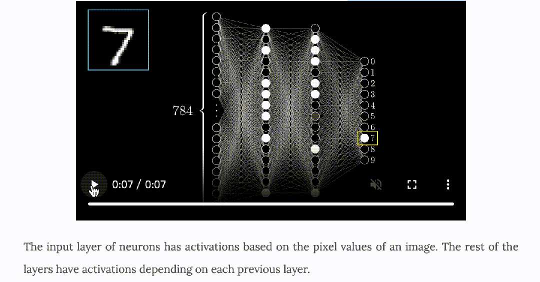 这些数字被渲染到一个28x28像素的网格上,其中每个像素都有一个介于0.0到1.0之间的灰度值。这784个值决定了网络输入层神经元的激活值。