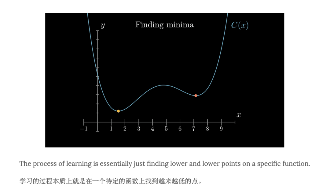 我需要指出,虽然将机器描述为“学习”可能会引发争议,但一旦你了解了它的工作原理,这种过程就不再像某种疯狂的科幻设想,而更像是一个微积分练习。归根结底,它只是寻找一个特定函数的最小值。