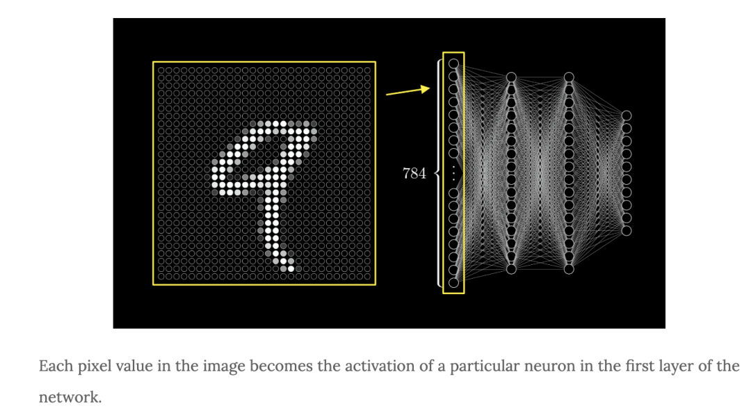 图像中的每个像素值成为网络第一层中特定神经元的激活值。