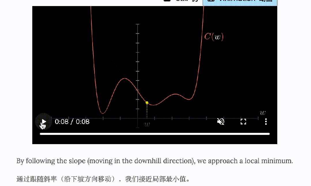 在每个点检查新的斜率并不断重复这一过程,你将逐渐接近函数的某个局部最小值。