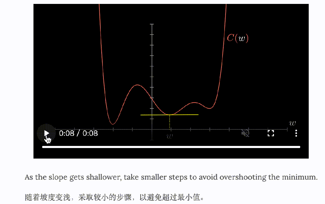 此外,注意如果你的步长与斜率本身成比例,那么当斜率在接近最小值时变缓,你的步长也会越来越小,这样可以防止你越过最小值。