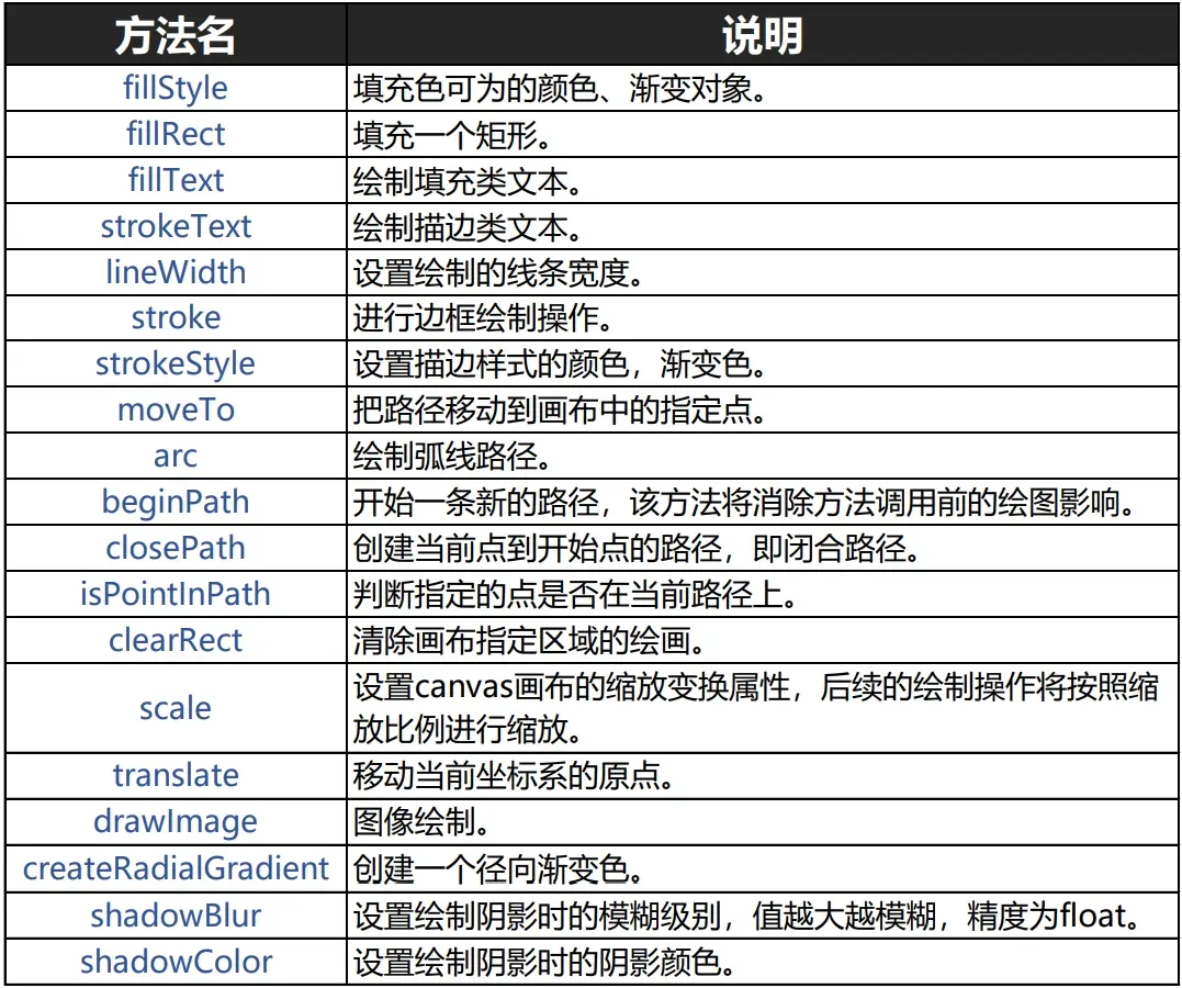 canvas 本身虽不具备绘制能力,但是提供了获取“画笔”的方法。开发者可通过 getContext('2d') 方法获取 CanvasRenderingContext2D 对象完成 2D 图像绘制,或通过 getContext('webgl') 方法获取 WebGLRenderingContext 对象完成 3D 图像绘制。