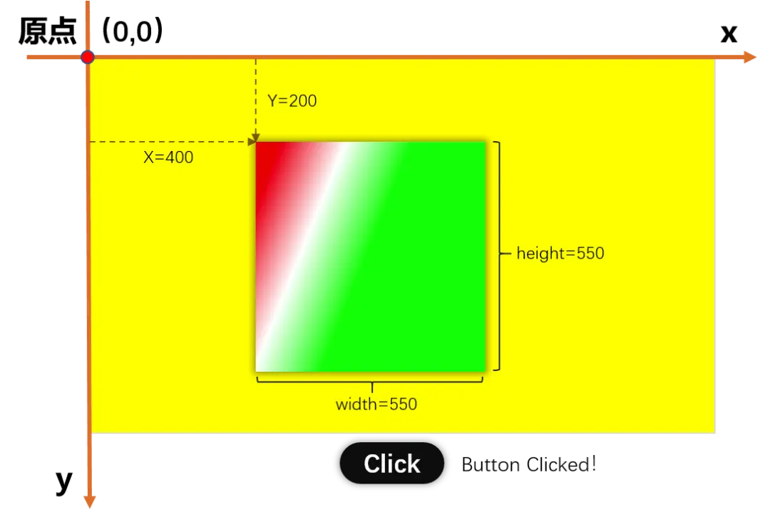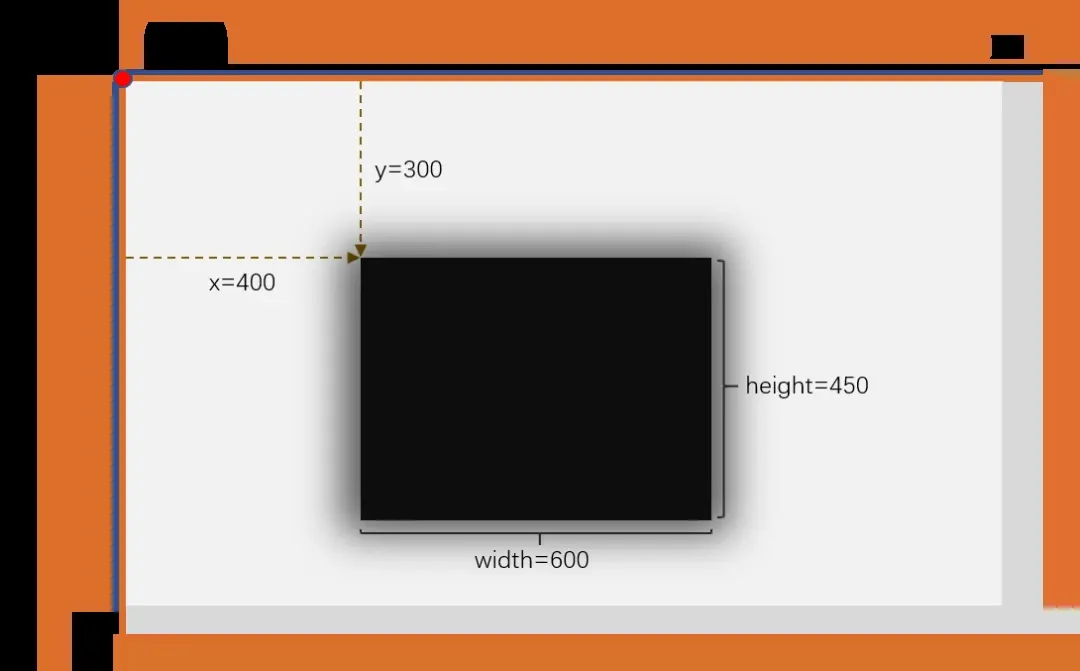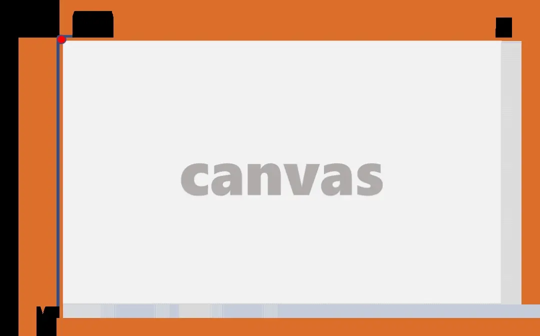 在 Web 浏览器中,canvas 是一个可自定义 width、height 的矩形画布,画布左上角为坐标原点,以像素为单位,水平向右为 x 轴,垂直向下为 y 轴,画布内所有元素都基于原点进行定位。如图 1 所示,我们通过 <canvas> 标签,创建了一个 width= 1500px,height=900px 的空白画布,我们还需要“画笔”才能绘制图形。canvas 采用轻量的逐像素渲染机制,以 JS 为“画笔”直接控制画布像素,从而实现图形绘制。