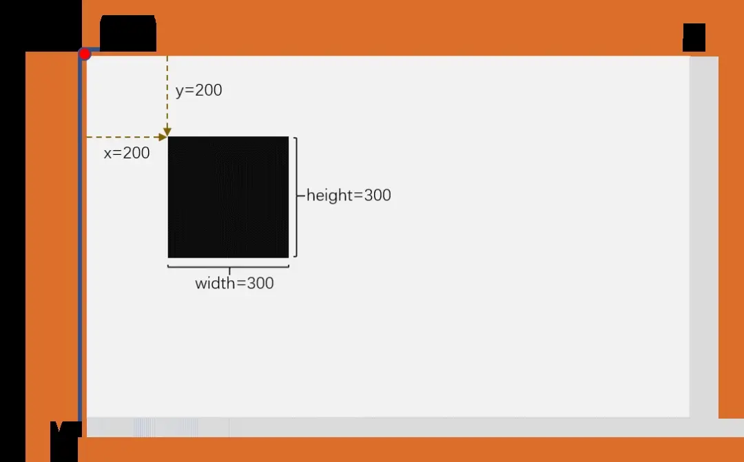 CanvasRenderingContext2D 对象提供了 fillRect(x, y, width, height)方法,用于绘制一个填充的矩形。如图 3 所示,在画布内绘制了一个黑色的填充矩形,x 与 y 指定了在 canvas 画布上所绘制的矩形的左上角(相对于原点)的坐标,width 和 height 则设置了矩形的尺寸。