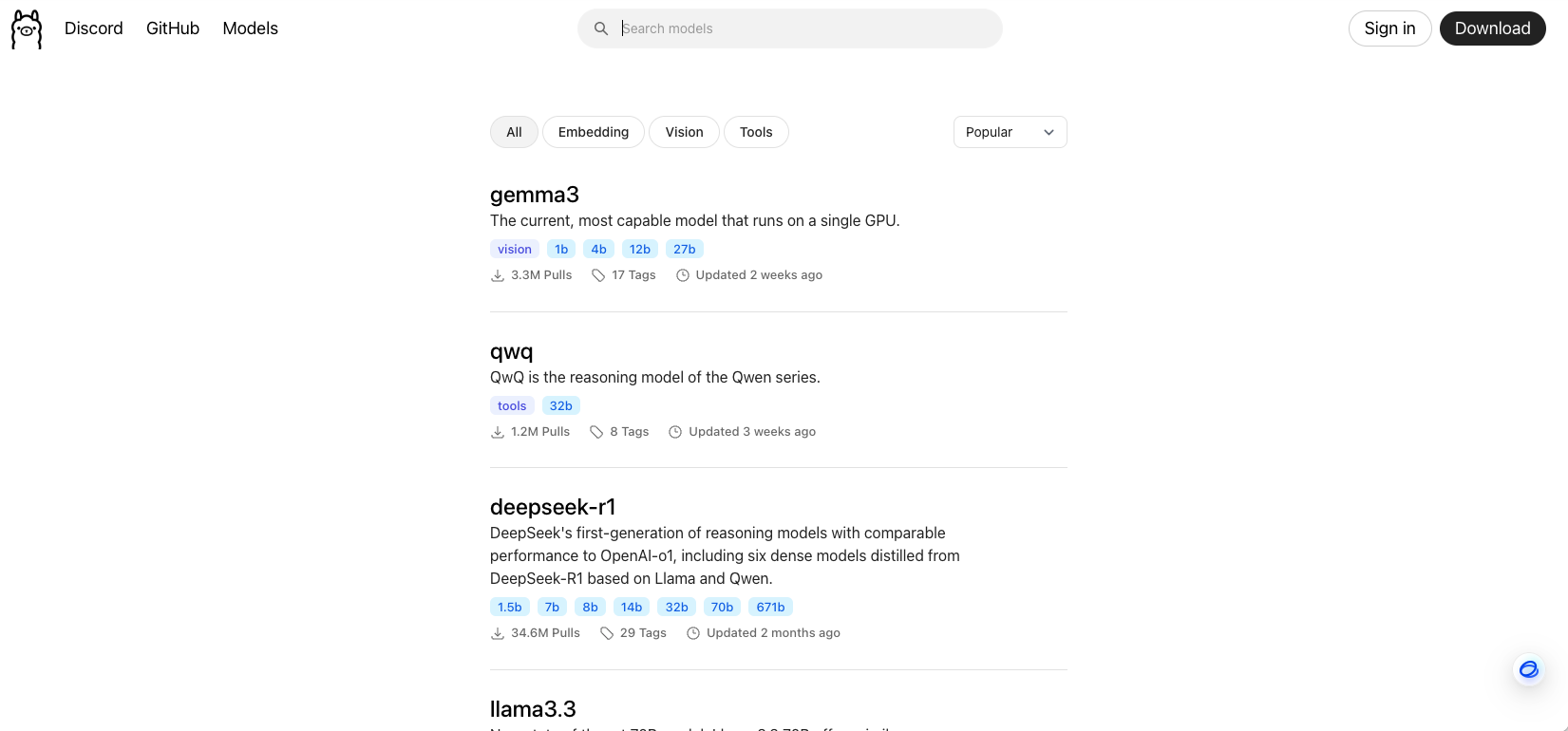 ollama run llama3 # 只需这行命令就能启动70亿参数的Llama3模型支持超过50种主流开源模型,涵盖聊天、代码生成、多模态等各类场景,模型库持续更新中。