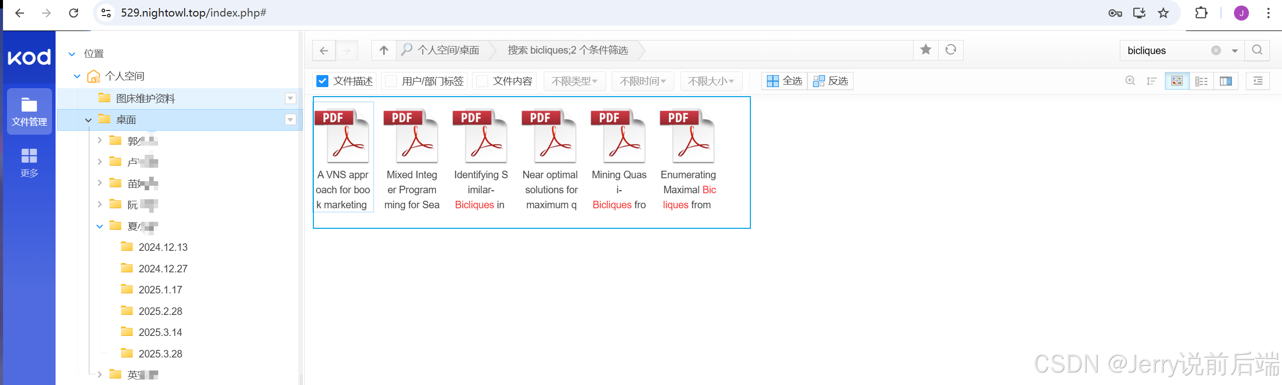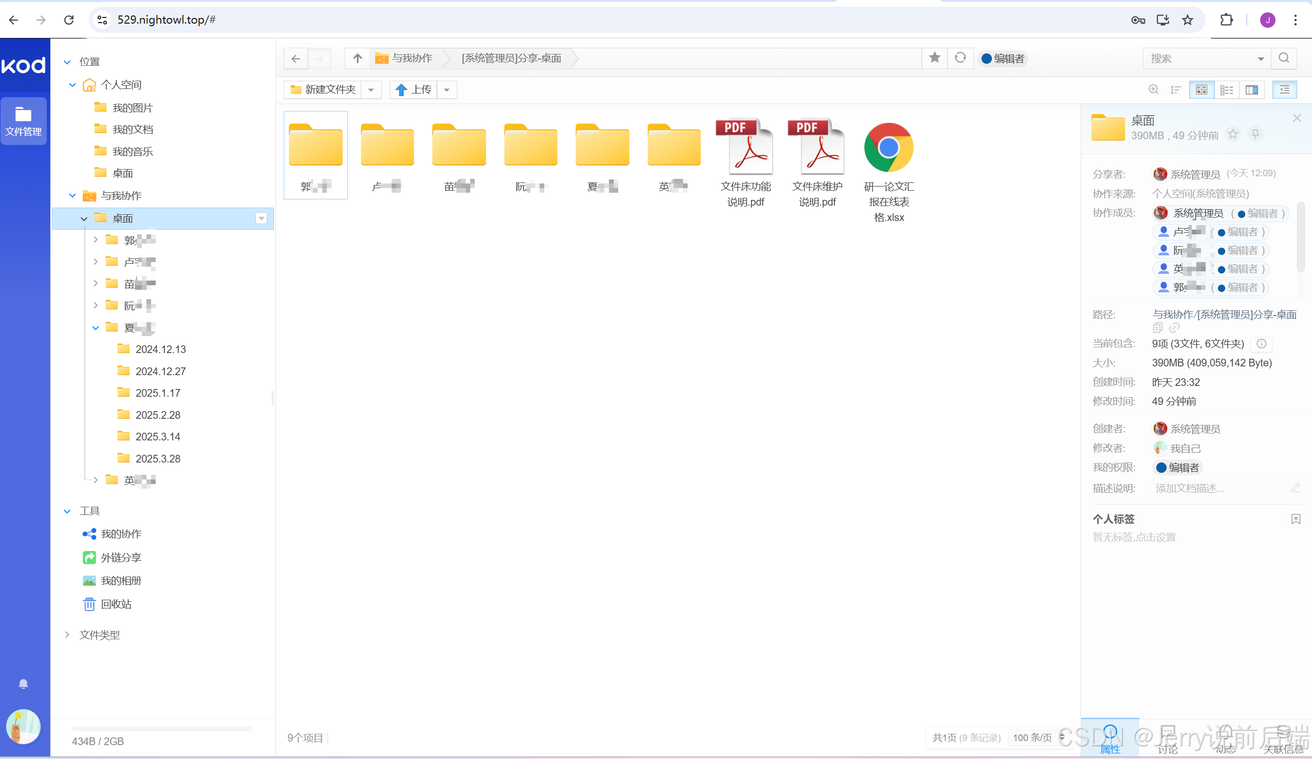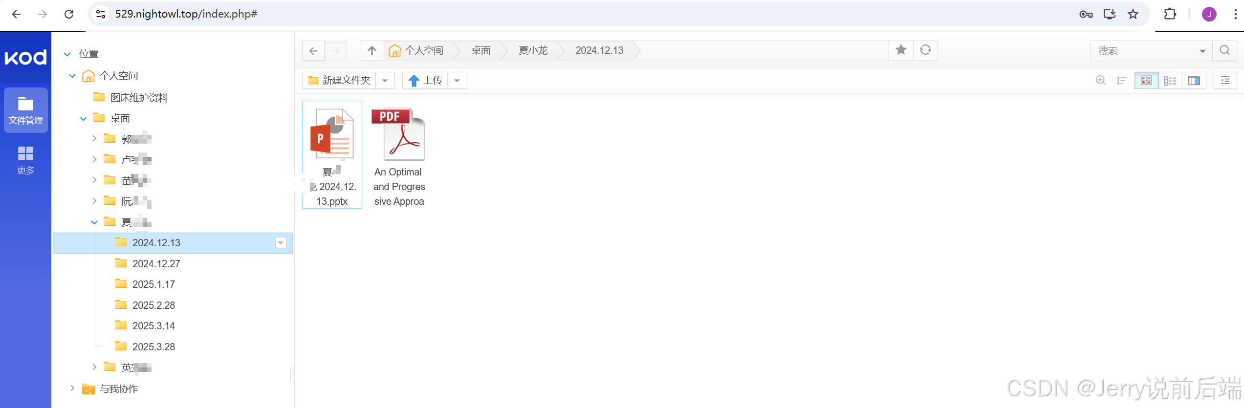 应对这种场景需求,我最初想的是拿A工具写一个文件床之类的项目,然后前端使用Vue3,后端使用koa框架,这样能够进一步熟练自己的前端知识,也能够为将来的自动化办公意识增加一个加分项。在实际实践中,AI生成的代码太过粗糙了,而且觉得投入的时间太多了,于是怪怪跑去了开源社区,最后找了<a href="https://kodcloud.com/">kodcloud开源项目</a>,能够很轻松的完成这种协作需求。
