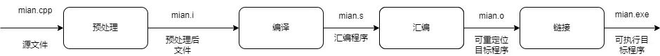 C++作为一个编译型语言,书写完的代码需要经过如下步骤才能构建为目标程序。