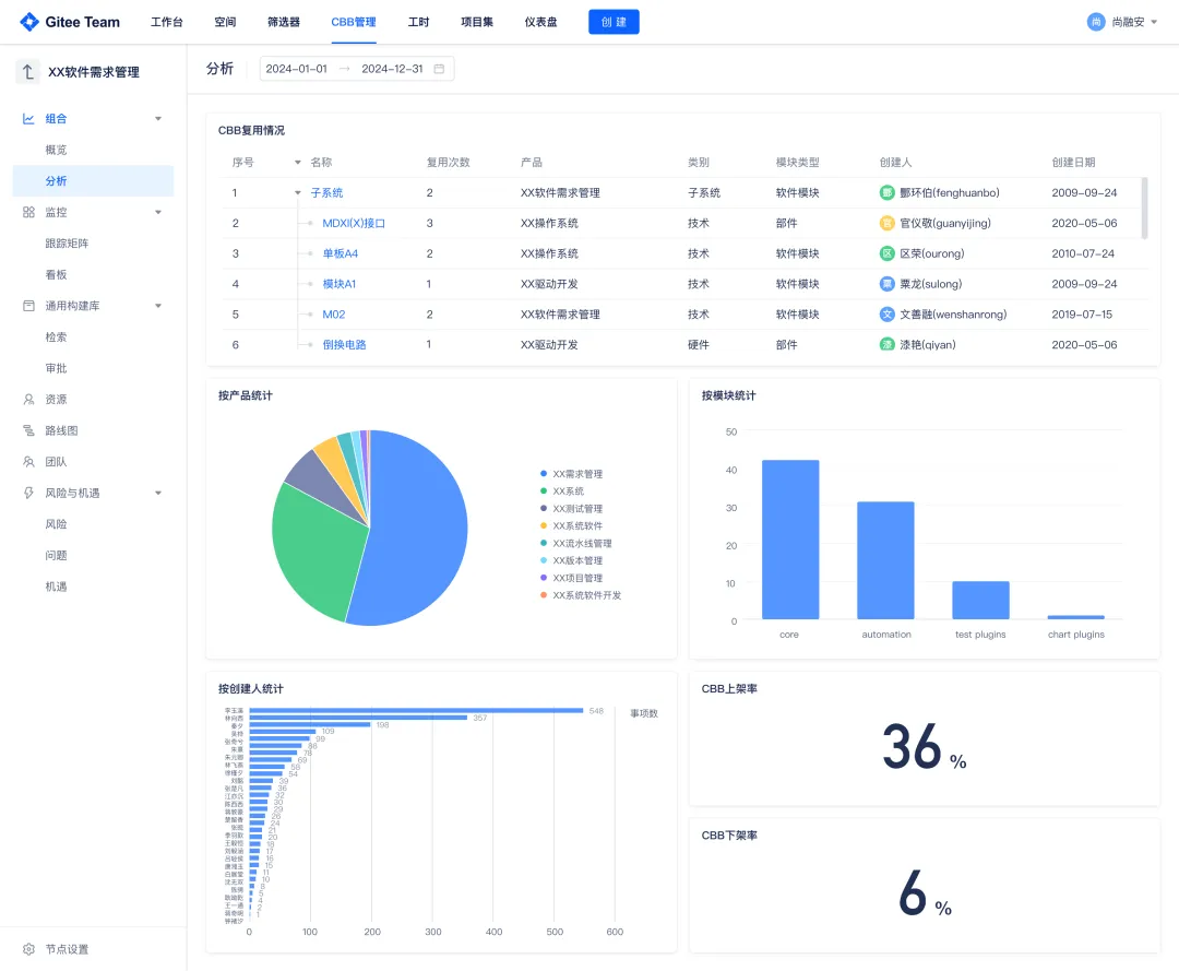 平台支持从复用频次、国产化代码、依赖层级率等多维度对模块进行评分,辅助企业建立统一的模块识别机制,有效遴选「值得投资」的 CBB 构件。