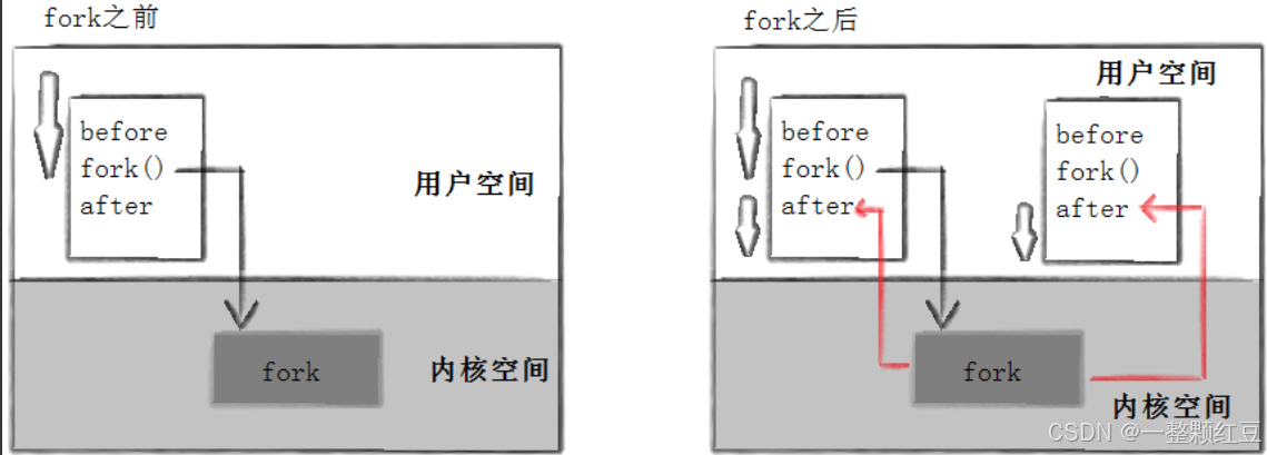 fork 函数的功能是创建一个子进程<sys/types.h> 和 <unistd.h>void ,返回值为 pid_t (实际上是Linux内核中typedef出来的一个类型)进程调用 fork,当控制转移到内核中的 fork 代码后,内核做如下几件事: