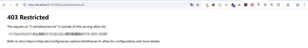 正常访问路径提示403:The request url "C:/windows/win.ini" is outside of Vite serving allow list.