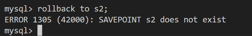 现在我们回到保存点s1处的状态;我们会发现表就是s1保存时的状态;