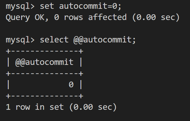 SQL语句:Set autocommit=1(默认就是自动提交的)